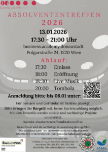 am 13. Jänner 2026 findet das diesjährige Absolvententreffen an unserer Schule statt.